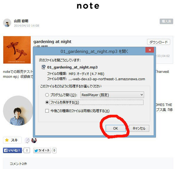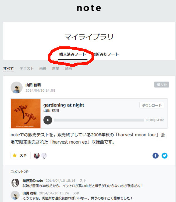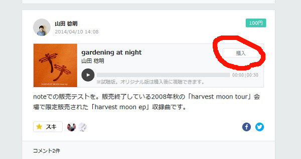 4月7日にサービスがはじまったところ、早速PANDA 1/2や高野寛さん、GOMES THE HITMANの山田稔明さんがアカウントを取得して、MP3音源の販売を行っていたので、私も試しに買ってみました。