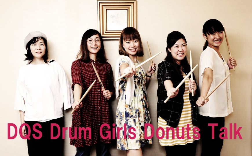 今回の特集記事は、11台のドラマーによるドラムロックオーケストラ、DQSのインタヴューです。タイトルにもあるように女性ドラマー、巷でいう「ドラム女子」にフォーカスして対談を行いました。