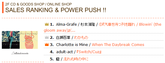 なんとモナレコードのCDセールスランキングで1位になったそうですよ!!!