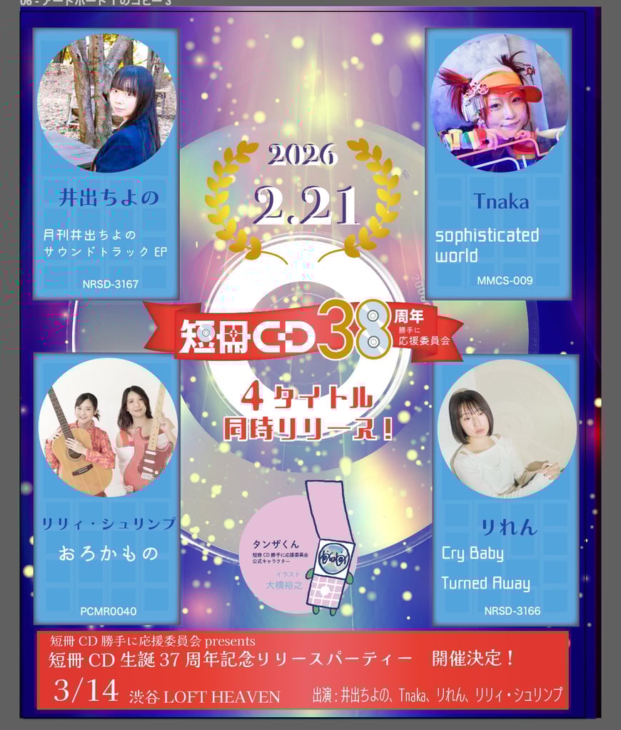 今年で4年目となる「短冊CD勝手に応援委員会」は、短冊CD生誕38周年の記念日にあたる2026年2月21日に4タイトルの短冊CDを同時リリースする。