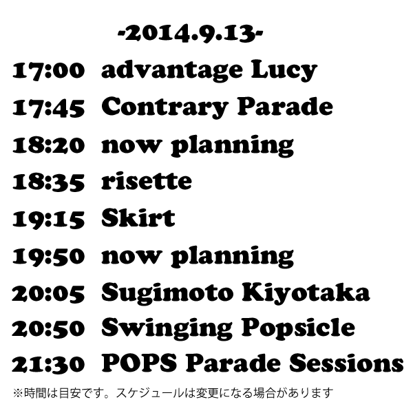 日時:2014年9月13日(土) open 16時 start 17時(予定)
