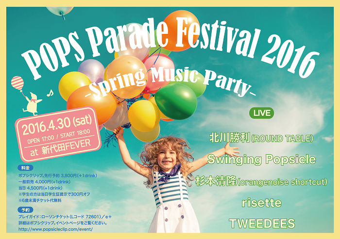 インディー・ポップやギターポップ、シティ・ポップを中心に応援している音楽WEBメディア「ポプシクリップ。」の7周年記念イベントとして、今年もPOPS Parade Festivalを開催します。