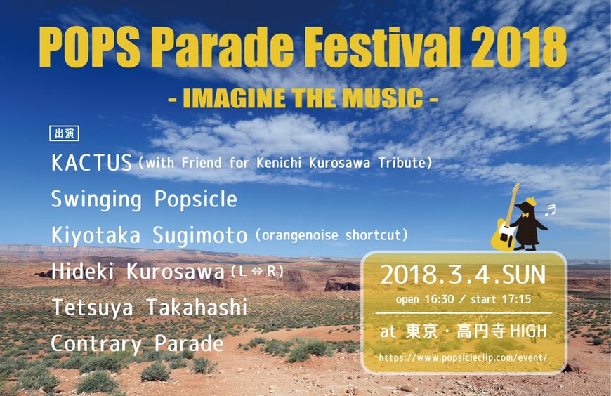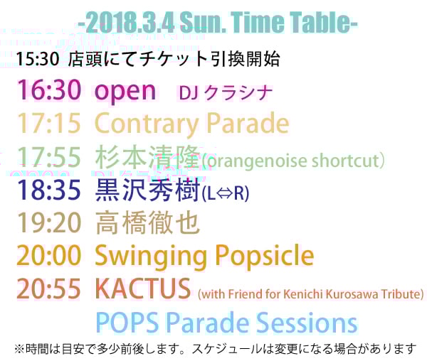 【出演】KACTUS(with Friend for Kenichi Kurosawa Tribute)/Swinging Popsicle/黒沢秀樹(L⇔R)/高橋徹也/杉本清隆(orangenoise shortcut)/Contrary Parade