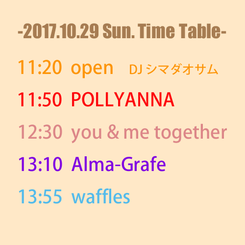 【日時】2017年10月29日(日) open 11:20 / start 11:50