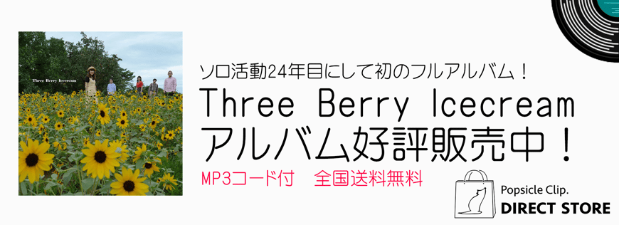 昨年11月27日の「レコードの日」第2弾にキャリア初のフルアルバム『Three Berry Icecream』をミオベル・レコードからリリースさせていただきました。9曲入りのフルアルバム、大変多くの方にご購入いただきました。ありがとうございました。(まだお聴きでない方は全国の主要レコードショップならびに、レーベル公式直販サイトでも販売中(全国送料無料、当店負担)なので、チェックしてね)