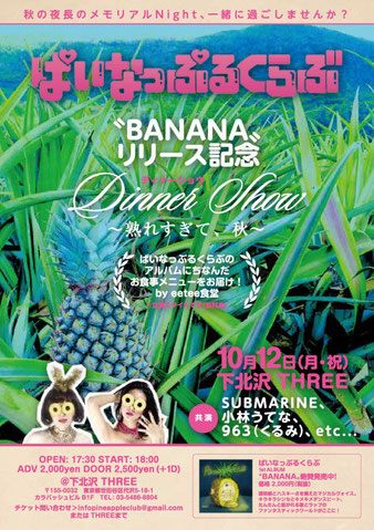 予約:メール予約 infopineappleclub@gmail.com までお名前と人数をお知らせください。